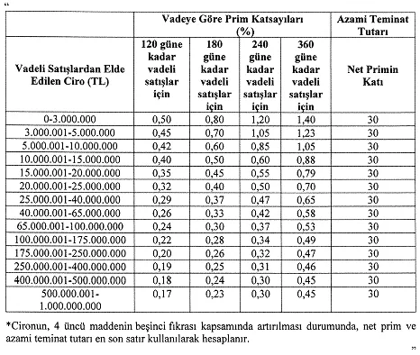 Tebliğin 12. maddesinin birinci ve beşinci fıkralarındaki tablolar revize edilirken, prim oranları ve çalışma esaslarında ayarlamalar yapıldı.