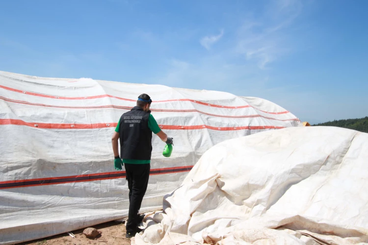 Kocaeli Büyükşehir Belediyesi, Kocaeli genelindeki kurban pazarlarında bayram öncesi ilaçlama yapıyor. İlaçlama çalışmaları bayram boyunca devam edecek