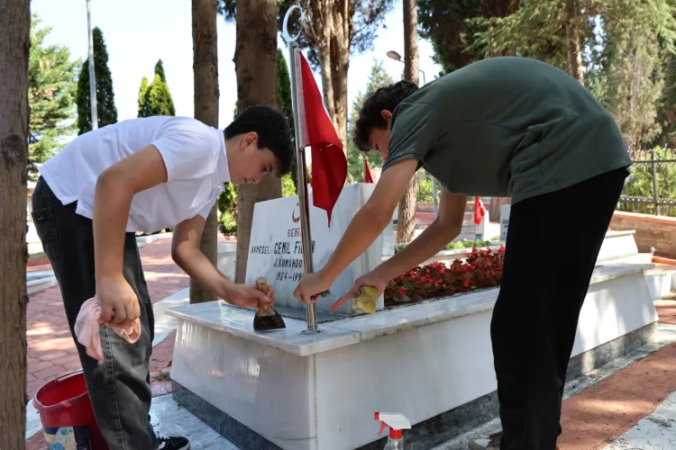 KOCAELİ (İGFA) - Kocaeli Büyükşehir Belediyesi Park ve Bahçeler Dairesi Başkanlığı’na bağlı Mezarlıklar Şube Müdürlüğü’nün organizasyonunda Bağçeşme Namazgâh Şehitliği’nde anlamlı bir etkinlik yapıldı. Necip Fazıl Kısakürek Anadolu İmam Hatip Lisesi öğrencilerinden gelen talep üzerine düzenlenen ziyarette gençler, hem şehitlerimizi dualarla andı hem de temizlik çalışmasına katılarak örnek bir davranış sergiledi.