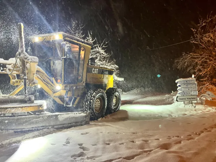 Ekipler, dün gece başlayan ve yüksek kesimlerde etkili olan kar yağışına karşı yol açma ve tuzlama çalışmalarını aralıksız sürdürüyor.