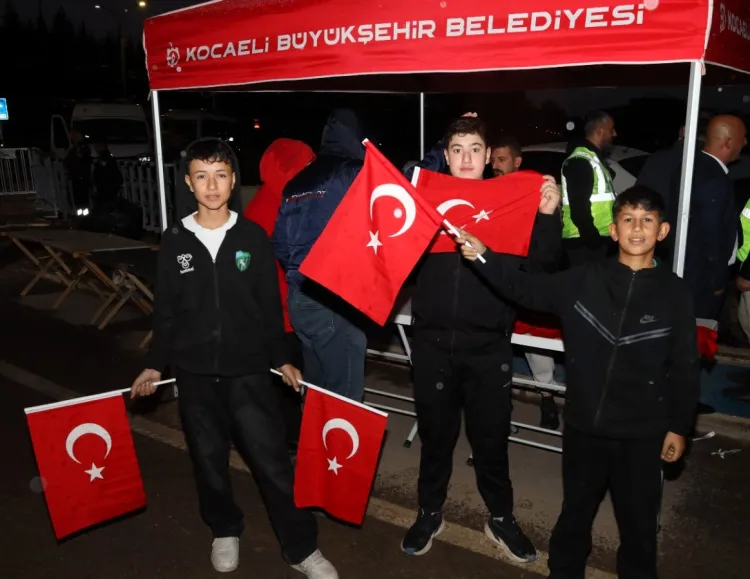 Kocaeli dışında İstanbul, Bursa, Yalova, Bilecik ve Eskişehir gibi illerden Kocaeli Stadyumu’na akın eden taraftarlar, milli coşkuya binlerce Türk bayrağı dağıtarak ortak olan Büyükşehir Belediyesi’ne teşekkür etti.