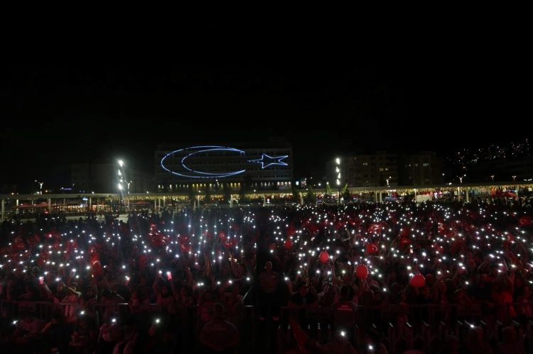 İzmit Milli İrade Meydanı’nı dolduran on binlerce Kocaelili, Fettah Can'ın şarkılarıyla zaferi coşkuyla kutladı. Türk bayraklarının dalgalandığı Milli İrade Meydanı’ndan birlik ve beraberlik görüntüleri eşliğinde zafer şarkıları yükseldi.