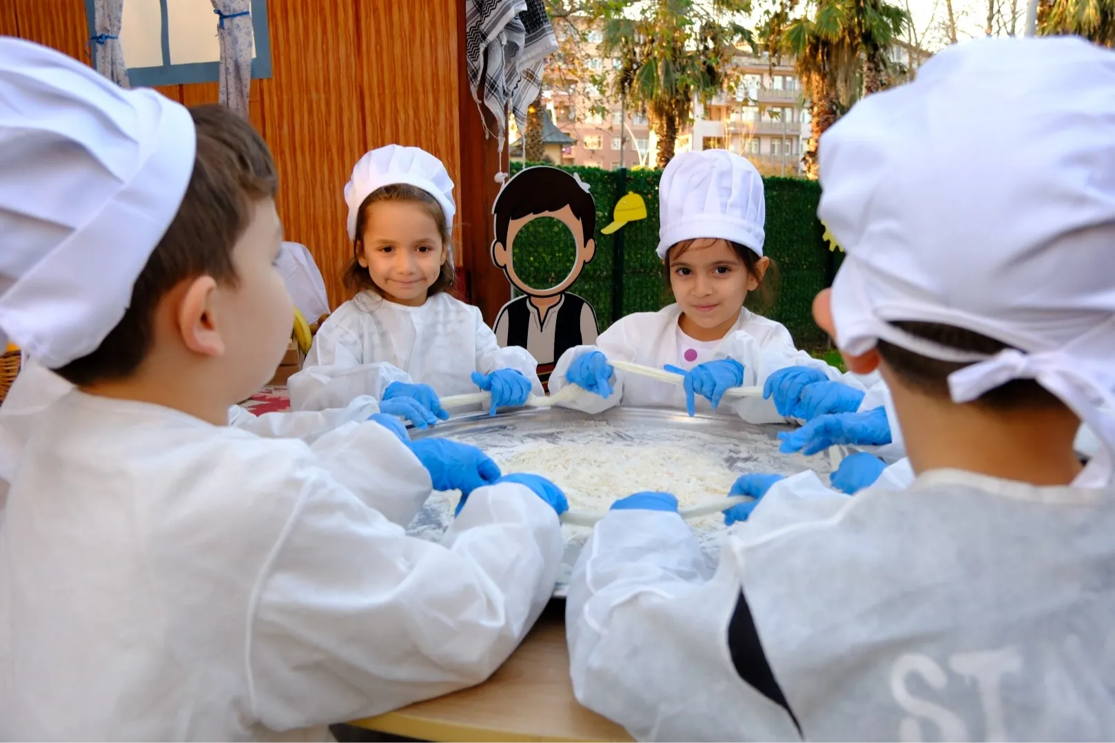 Ege yöresine özgü taş ile zeytin kıran minikler, geleneksel yöntemleri uygulamalı olarak görme imkânı yakaladı. Portakal sıkan çocuklar taze meyve suyunun doğal ve sağlıklı yönünü keşfetti. Etkinlikler yalnızca mutfakla sınırlı kalmadı. Minikler örgü örerek el emeğinin değerini öğrendi. Çocuklar, “Fidayda” şarkısı eşliğinde sergiledikleri gösteriyle etkinliğe renk kattı. Müzik ve ritimle uyum içinde sahne alan miniklerin gösterisi büyük beğeni topladı.