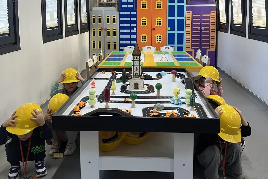 Programda ayrıca güvenli yapıların nasıl inşa edildiği ve dayanıklı binaların önemine dair örneklerle “sağlam bina nasıl yapılır” konusu işlendi. Minik mimarlar, maket şehir üzerinde güvenli alanlar belirleyerek, aileleriyle birlikte toplanma alanı planlamasının önemini öğrendi.