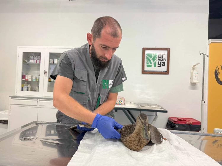 Yorgun ve bitkin gözüken ördek, hemen Ormanya Yaban Hayatı Kurtarma ve Rehabilitasyon Merkezi’ne götürülerek tedavi altına alındı.