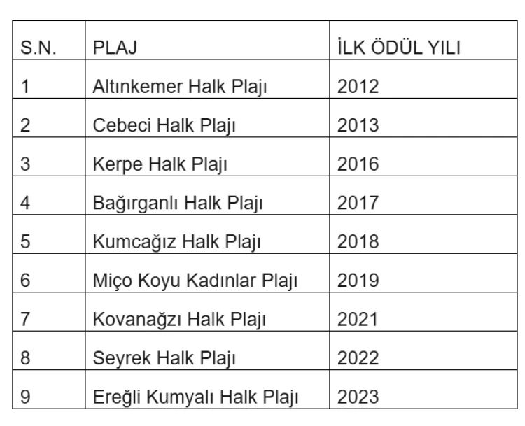 Uluslararası Mavi Bayrak Jürisi, 2025 yılı “Mavi Bayrak” ödüllerini açıkladı. Bu yıl Türkiye’de 577 plaj, 29 marina, 18 turizm teknesi ve 8 bireysel yat Mavi Bayrak ödülüne layık görüldü. Türkiye, bu başarıyla İspanya ve Yunanistan’ın ardından dünyada 3. sıradaki yerini korudu. Uluslararası Mavi Bayrak Jürisi tarafından 2025 yılı Mavi Bayrak ödüllerinin açıklanması sonucunda; Karamürsel ilçesinde bulunan Altınkemer Halk Plajı ve Ereğli Kumyalı Halk Plajı ile Kandıra ilçesinde bulunan Cebeci, Kerpe, Bağırganlı, Kumcağız, Miço Kadınlar, Kovanağzı ve Seyrek plajları olmak üzere toplam 9 adet plaj “Mavi Bayrak” ile ödüllendirildi.