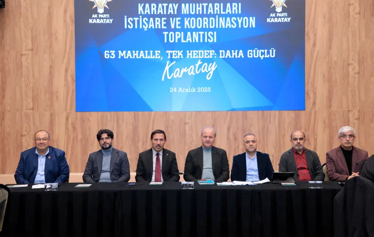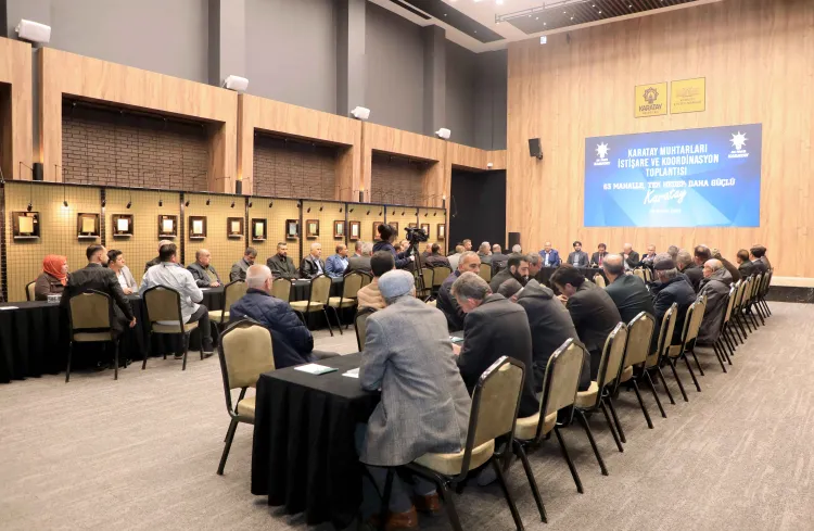 KONYA (İGFA) - “63 mahalle, tek hedef: Daha güçlü Karatay” anlayışıyla düzenlenen Mahalle Muhtarları İstişare ve Koordinasyon Toplantısı’nda, ilçenin 63 mahallesine yönelik yürütülen hizmet ve yatırımlar ele alınırken, mahallelerin öncelikli ihtiyaçları muhtarlarla birlikte değerlendirildi.