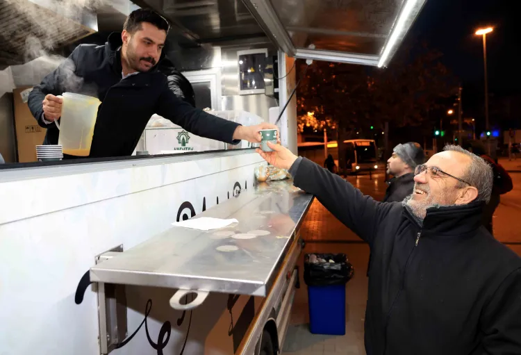 KONYA (İGFA) - Konya Karatay’da soğuk havalarda ilçenin farklı noktalarında hizmet veren mobil ikram araçlarıyla, sabahın erken saatlerinde işe, okula ya da hastaneye gitmek üzere yola çıkan vatandaşlara sıcak çorba ikram ediliyor. İlçenin işlek noktalarında gerçekleştirilen uygulama ile vatandaşlar güne güzel bir başlangıç yapıyor.