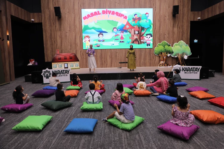 Konya Karatay Belediyesi’nin düzenlediği “Hoş Kubbe Masal Etkinliği”, 5–6 yaş grubundaki çocukların yoğun ilgisiyle devam ediyor.