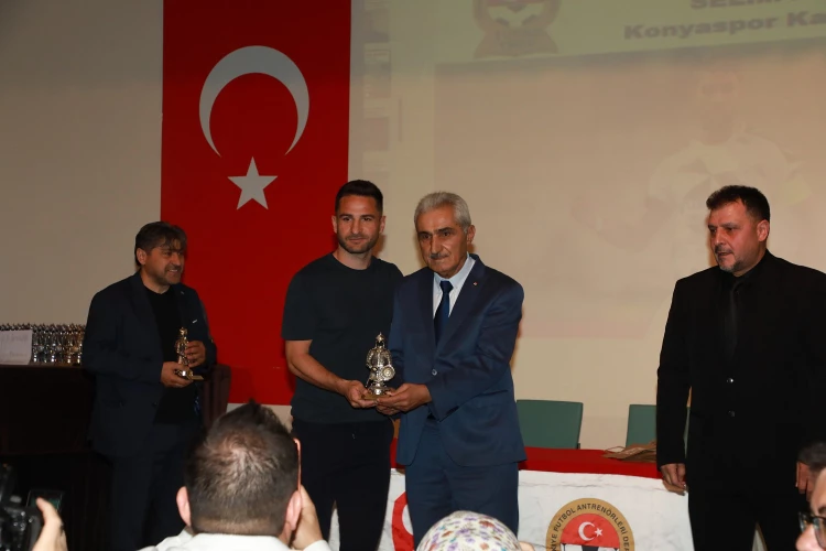 KONYA (İGFA) - Türkiye Futbol Antrenörleri Derneği (TÜFAD) Konya Şubesi tarafından her yıl geleneksel olarak düzenlenen “Yılın Altın Adamları Ödül Töreni”, Necmettin Erbakan Üniversitesi (NEÜ) Ahmet Keleşoğlu Eğitim Fakültesi Erol Güngör Salonu’nda gerçekleştirildi. Törende, Karatay Belediye Başkanı Hasan Kılca Onur Ödülü’ne layık görüldü.