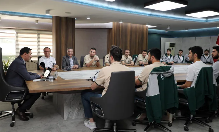 KONYA (İGFA) - Türkiye Basketbol 2. Ligi’nde bu sezon mücadele etmeye hazırlanan Karatay Belediyespor Basketbol A Takımı, 23 yaş ortalamasıyla ligin en genç ekibi olarak dikkat çekiyor. Karatay temsilcisi, yeni sezona güçlü bir başlangıç yapmak amacıyla Karatay Belediye Başkanı Hasan Kılca’yı makamında ziyaret etti.