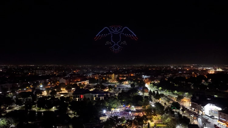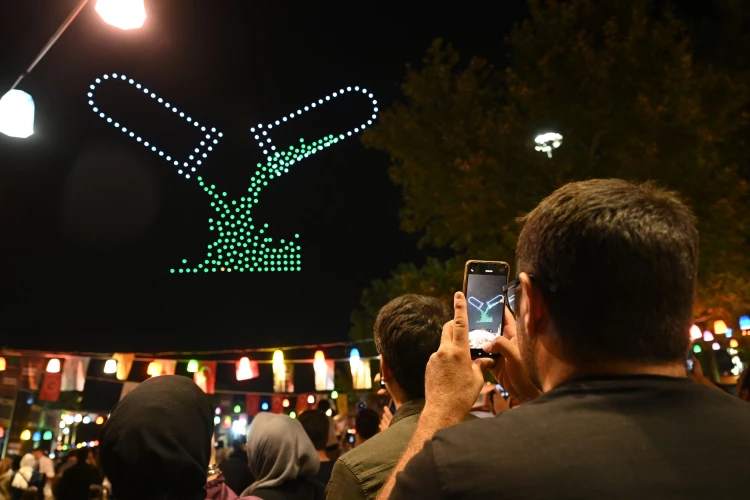 Aynı anda havalanan 250 dronun havada çizdiği; dünya, Kitap ve Semboller, çift başlı kartal, “Benim Şehrim”, zafer meşalesi, ateşlenen roket, Türksat uydusu, astronot, Türk Bayrağı ile “Türkiye” yazısı gökyüzünü aydınlattı. Yapılan ışık gösterisi özellikle çocuklardan büyük beğeni aldı.