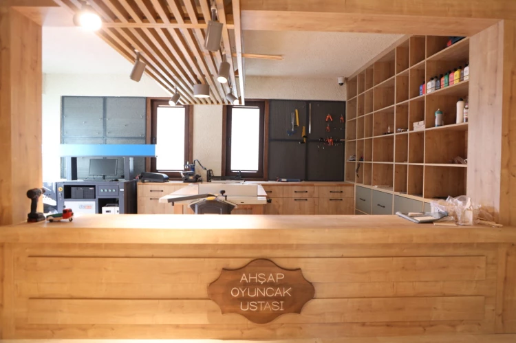İki katlı atölyede; alt katta danışma ve ahşap ustası için özel çalışma alanı, üst katta ise 16 kişilik kapasiteye sahip, çocuklara uygun kesim ve boyama istasyonları yer alacak.
