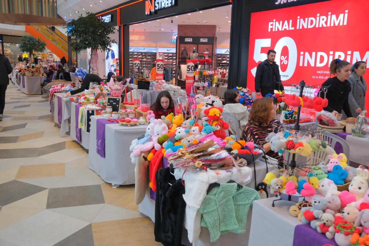 14 Burda AVM'nin alt katında kurulan pazarda 20'den fazla kadın üretici stant açtı. Stantlarda; hediyelik çanta, toka, takı, mum, çeşitli aksesuarlar, örgü ürünler, rölyef çalışmaları, ahşap tasarımlar ve seramik ürünler başta olmak üzere pek çok el emeği ürün uygun fiyatlarla satışa sunuluyor.