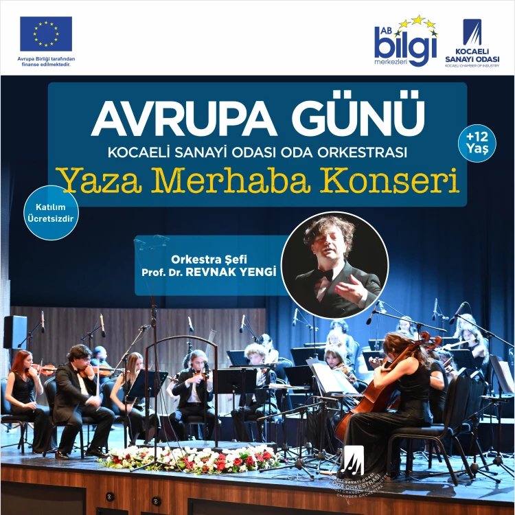 Kocaeli Sanayi Odası AB Bilgi Merkezi tarafından Avrupa Günü kapsamında, Şef Prof. Dr. Revnak Yengi yönetiminde sunulacak KSO Oda Orkestrası Avrupa Günü ve Yaza Merhaba Konseri düzenlenecek.