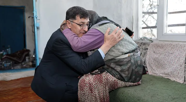 Kütahya Belediye Başkanı Eyüp Kahveci, yaşlı vatandaş Nazmiye Avcı'yı ikametgahında ziyaret etti.