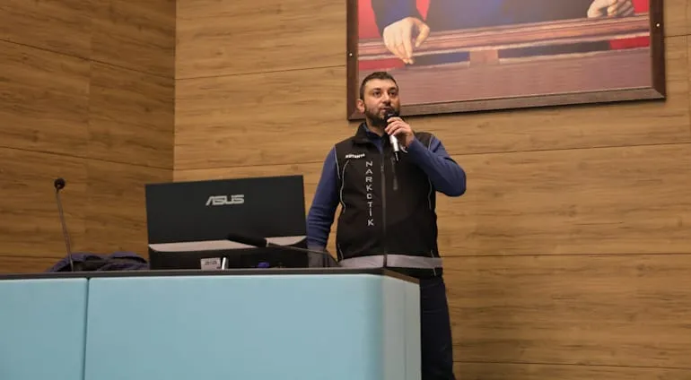 Eğitimde, bağımlılıkla mücadelede erken farkındalığın önemi, risk gruplarının tanınması, korunma yolları ve kamu kurumlarının bu süreçteki sorumlulukları hakkında bilgilendirme yapıldı.