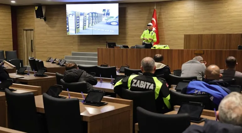 Belediye personelinin daha etkin, güvenli ve verimli çalışabilmesi için düzenlenen Trafik Eğitimi, belediyenin meclis salonunda gerçekleştirildi. Eğitimi, Kütahya İl Emniyet Müdürlüğü'nde görevli Başpolis Ahmet Kahraman verdi.