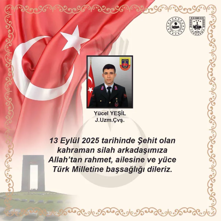 KÜTAHYA (İGFA) - Jandarma Genel Komutanlığı, Kütahya İl Jandarma Komutanlığı emrinde görevli J.Uzm.Çvş. Yücel Yeşil'in yol kontrol devriyesi görevi esnasında yolun diğer istikametinde seyir halinde olan bir otomobilin takla atıp çarpması sonucu şehit olduğunu duyurdu.