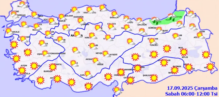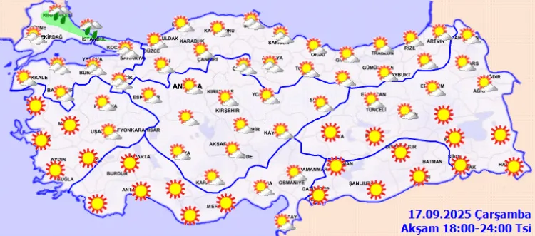 ANKARA (İGFA) - Meteoroloji Genel Müdürlüğü, 17 Eylül Çarşamba gününe ilişkin günlük hava tahmin raporunu yayımladı.