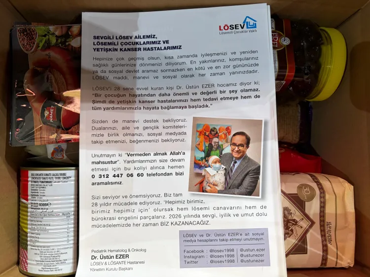İSTANBUL (İGFA) - Lösemili Çocuklar Sağlık ve Eğitim Vakfı (LÖSEV), Türkiye genelinde lösemi ve kanser tedavisi gören çocuk ve yetişkin hastalara Ramazan ayında desteklerini yoğunlaştırdı. “Önce Çocuklar İyileşsin” sloganıyla yürütülen kampanya kapsamında, binlerce gönüllü ve bağışçının desteğiyle hazırlanan LÖSEV Gıda Paketleri, yüzlerce hastanın evine kadar ulaştırılıyor.