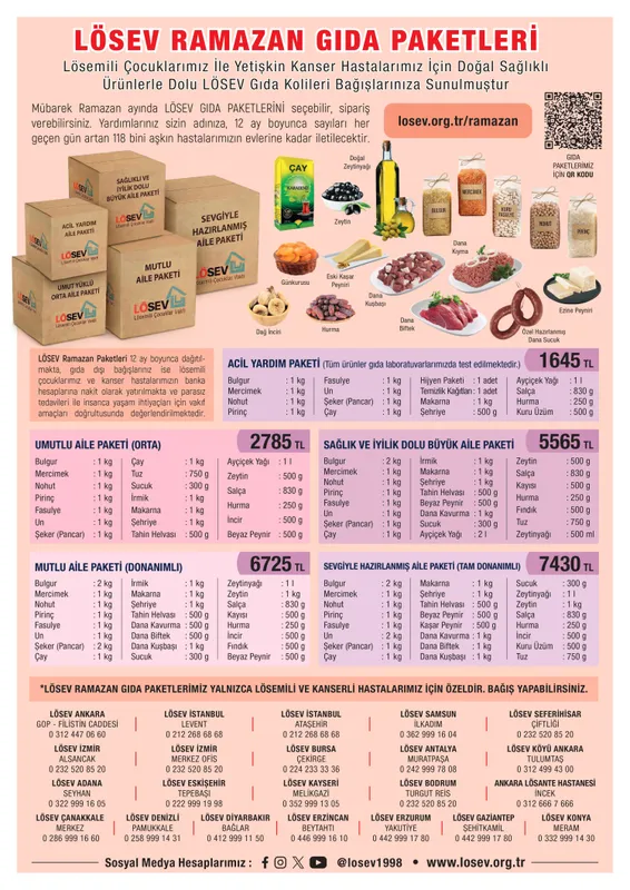 İstanbul’daki Ülker Sports Arena’da gönüllüler ve bağışçılarla hazırlanan koliler, doğal ve sağlıklı ürünlerle donatılırken, Türkiye’nin dört bir yanındaki ailelerin sofralarına Ramazan boyunca bereket katılıyor. LÖSEV, 27 yıldır sürdürdüğü ücretsiz tedavi, eğitim, konaklama, sosyal ve psikolojik destek hizmetleriyle, Vakfa kayıtlı 118 bini aşkın çocuk ve yetişkin hastanın yanında oluyor.
