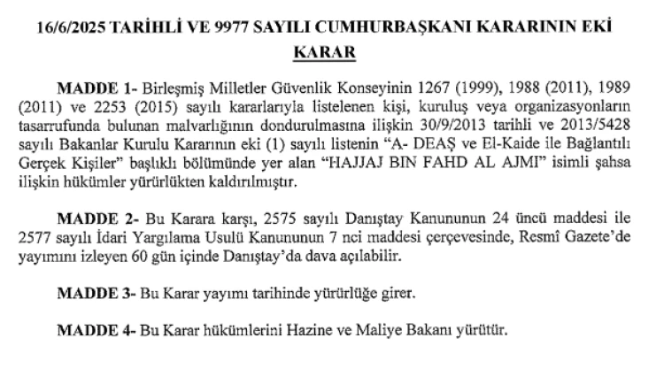 Bugünkü Resmi Gazete'de yayımlanan değişiklik, Türkiye’nin uluslararası yükümlülükleri doğrultusunda terörizmle mücadele kapsamında atılan adımlardan biri olarak değerlendirildi.