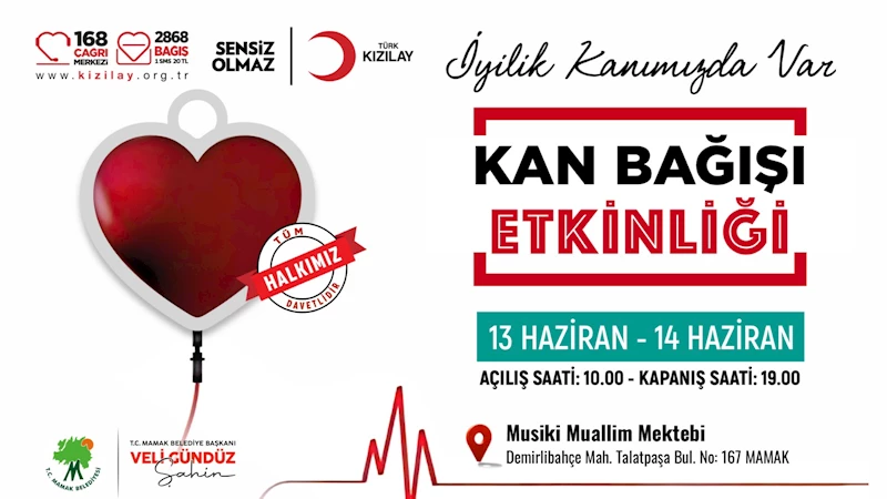 Mamak Belediyesi ile Türk Kızılay’ı, toplumsal dayanışmayı artırmak ve kan ihtiyacına dikkat çekmek amacıyla kan bağışı kampanyası düzenleniyor. “İyilik Kanımızda Var” sloganıyla hayata geçirilen kampanya 13-14 Haziran tarihlerinde Musiki Muallim Mektebi önündeki Kızılay’ın mobil kan bağış aracında gerçekleştirilecek.