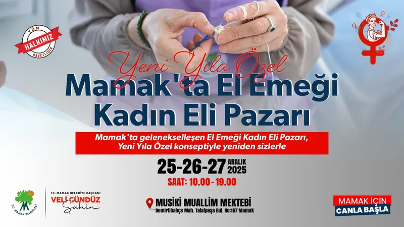 Mamak Belediyesi, üreten kadınlara yönelik desteklerini sürdürüyor. "El Emeği Kadın Eli Pazarı", bu kez yeni yıla özel olarak Musiki Muallim Mektebi'nde kurulacak. Kadınların el emeği ürünleri, üç gün boyunca Mamaklılarla buluşacak.