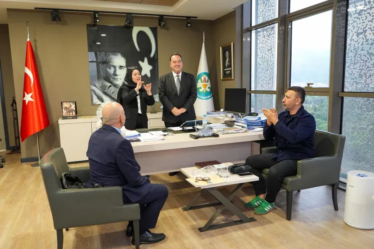 MANİSA (İGFA) - Avrupa’da işitme engelliler sporuna liderlik eden Manisa İşitme Engelliler Spor Kulübü Başkanı Bilal Cansu ve yönetimi, DCL Yönetim Kurulu Üyeleri Thomas Kramer ve Rosario De Caro ile birlikte Manisa Büyükşehir Belediye Başkanı Besim Dutlulu’yu ziyaret etti.