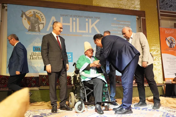 Manisa Valisi Vahdettin Özkan, yaptığı konuşmasında geçmişten günümüze Ahilik Kültürü hakkında bilgi verdi, Ahilik Haftası’nı kutladı. Vali Özkan, “Kadimden beri en geleneksel en sürdürülebilir, en vazgeçilemez bir mesleği icra ediyorsunuz. Toplumumuzun adeta iskeletini oluşturuyorsunuz ve toplumumuzun ortalamalarını taşıyorsunuz. Toplumumuzun, Türk milletinin, şehrimizin hissiyatının tercümanlarısınız sizler. Dolayısıyla tarihten sudur edip gelen bu hissiyatın mümessili olmak, temsilcisi olmak, taşıyıcısı olmak ayrı bir kıymettir, ayrı bir değerdir. Bu aynı zamanda milli değerlerimizi, manevi değerlerimizi, kültürel değerlerimizi en berrak bir şekilde, en saf bir şekilde taşıyıp gelecek nesillere aktaran bir mecradır. Bu ahilik kültürü” diye konuştu.