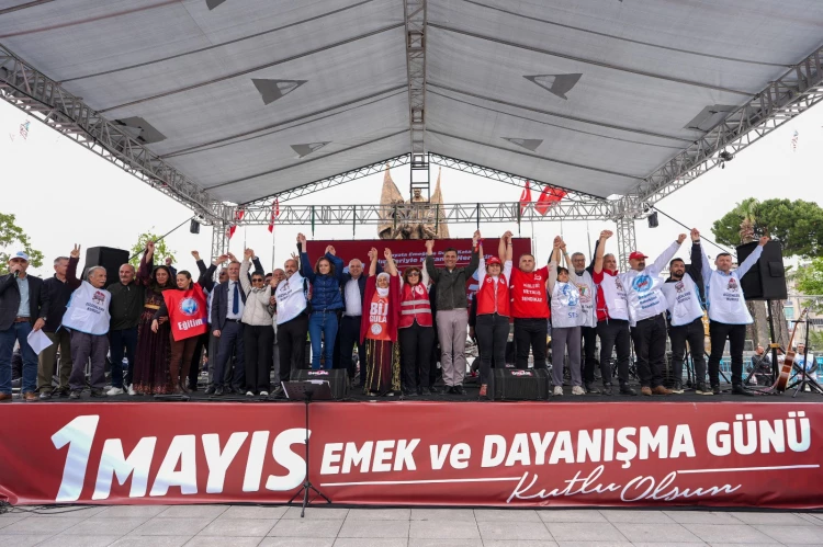 Manisa Büyükşehir Belediye Başkanı Ferdi Zeyrek, 1 Mayıs Emek ve Dayanışma Günü'nde sendikalar, işçiler ve vatandaşlarla birlikte kortej yürüyüşüne katılarak Cumhuriyet Meydanı’nda halka seslendi.