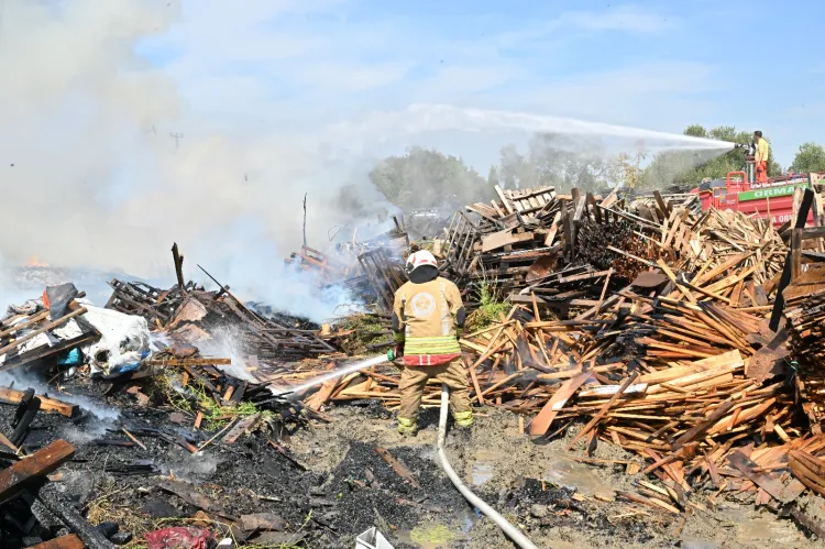 MANİSA (İGFA) - Manisa Büyükşehir Belediyesi İtfaiye Dairesi Başkanlığı ekipleri, Muradiye Mahallesi’ndeki ahşap palet fabrikasının depo alanında çıkan yangına müdahale edildi.