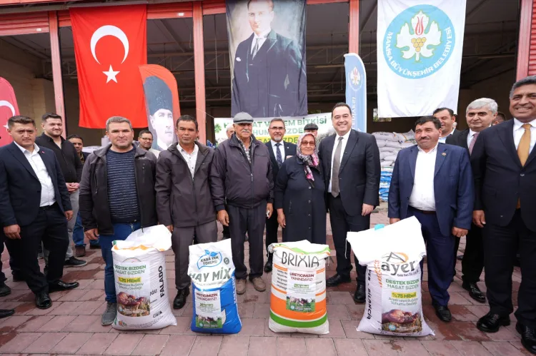 Manisa Büyükşehir Belediyesi, üreticiye destek projeleri kapsamında, yüzde 75 hibeli olarak bin 397 üreticiye 216 bin kilogram buğday, 188 bin kilogram arpa tohumu dağıtımında bulundu. Yüzde 75 hibe destekli Yem Bitkisi ve Süt Tohumu Bizden, Hasat Sizden Projesi ile de 114 bin 500 kilogram 5’li karışım yem bitkisi tohumu, 5 bin 925 kilogram süt otu tohumu desteğinde bulunuldu. Meyve üreticilerine yönelik olarak ise yüzde yüz hibeli olarak, bin 999 üreticiye 24 bin 700 litre sıvı gübre ve 3 bin 432 litre aminoasit desteği verilmeye başlandı.