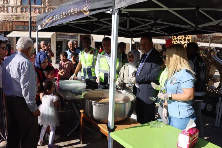 MARDİN (İGFA) - Midyat Belediyesi tarafından düzenlenen etkinlik kapsamında, Recep Tayyip Erdoğan Parkı, Kuyumcular Çarşısı ve Millet Bahçesi önünde kurulan stantlarda vatandaşlara aşure dağıtıldı.