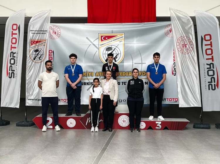 Kategorilerinde dereceye giren sporculara madalya ve kupaları, Türkiye Atıcılık Federasyonu yöneticileri tarafından verildi.