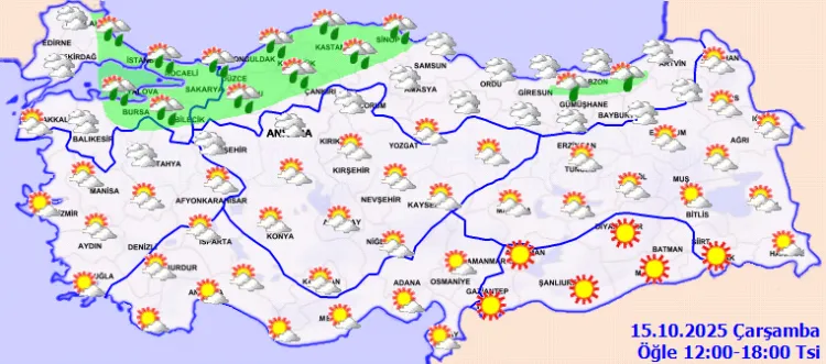 ANKARA (İGFA) - Meteoroloji Genel Müdürlüğü, 15 Ekim Çarşamba gününe ilişkin hava tahmin raporunu yayımladı.