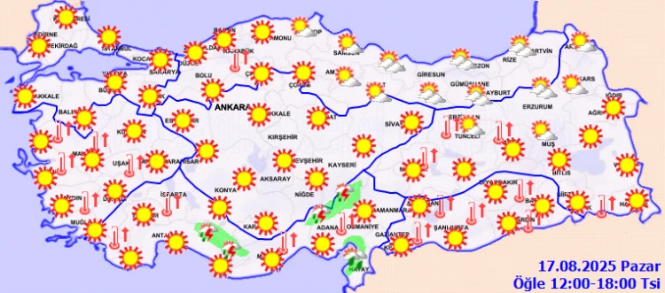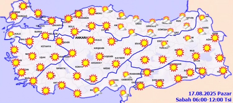 ANKARA (İGFA) - Meteoroloji Genel Müdürlüğü, 17 Ağustos Pazar gününe ilişkin hava tahmin raporunu yayımladı.
