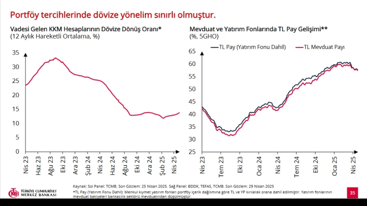 Mart ayındaki finansal piyasalardaki dalgalanmalara proaktif tedbirlerle müdahale edildiğini belirten Karahan, "Sıkı para politikası kararlılıkla sürdürülecek, dezenflasyon devam edecek. 2025’te cari açığın milli gelire oranı, 2024’ten yüksek olsa da uzun vadeli ortalamaların altında kalacak. Tüketici fiyatlarındaki maliyet baskıları hafifliyor, bu durum sektör geneline yayılıyor. Enflasyon beklentileri, dezenflasyon hedefinin üzerinde seyretse de likidite koşulları yakından izleniyor ve etkili yönetim araçları kullanılıyor" diye konuştu.