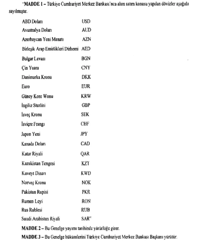 Bugünkü Resmi Gazete'de yayımlanarak yürürlüğe giren değişiklik kapsamında, TCMB tarafından alım-satım konusu yapılan döviz listesi güncellendi.