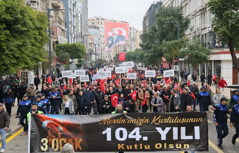 Toroslar Belediyesinin, Mersin'in düşman işgalinden kurtuluşunun 104'üncü yılı dolayısıyla düzenlediği 3 Ocak Kuvayi Milliye Yürüyüşü, büyük bir katılımla gerçekleştirildi.