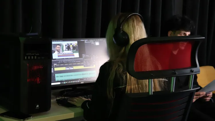 Birebir stüdyo ortamının sağlandığı okulda öğrenciler, öğretmenlerinin kılavuzluğunda kamera tekniklerinden sunuculuğa, yönetmenlikten montaj işlemlerine tüm süreçlerde aktif rol alıyor.