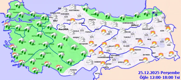 ANKARA (İGFA) - Meteoroloji Genel Müdürlüğü, 25 Aralık Perşembe gününe ilişkin hava tahmin raporunu yayımladı.