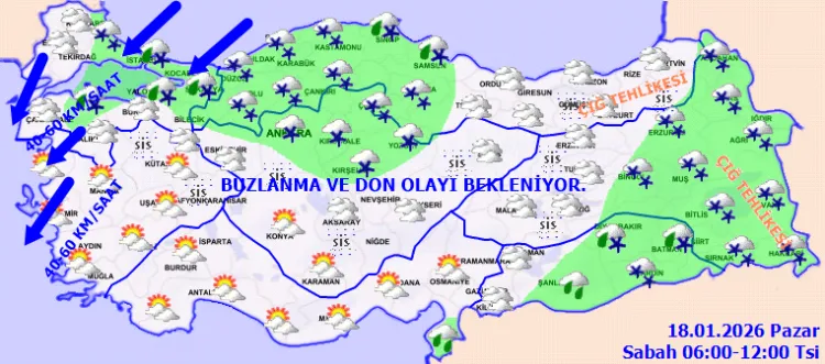 Yağışların, Kastamonu ve Samsun çevrelerinde yer yer kuvvetli olması bekleniyor. İç ve doğu kesimlerde buzlanma ve don olayı ile birlikte pus ve yer yer sis bekleniyor. Doğu Karadeniz’in iç kesimlerinin yüksekleri ile Doğu Anadolu’nun doğusunda yüksek kar örtüsüne sahip eğimli kesimlerinde çığ tehlikesi bulunmaktadır.
