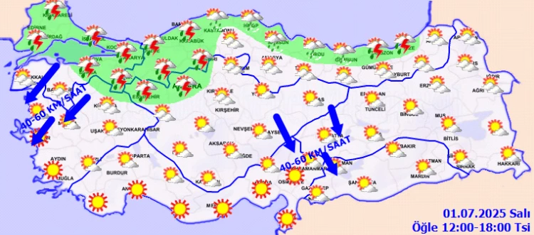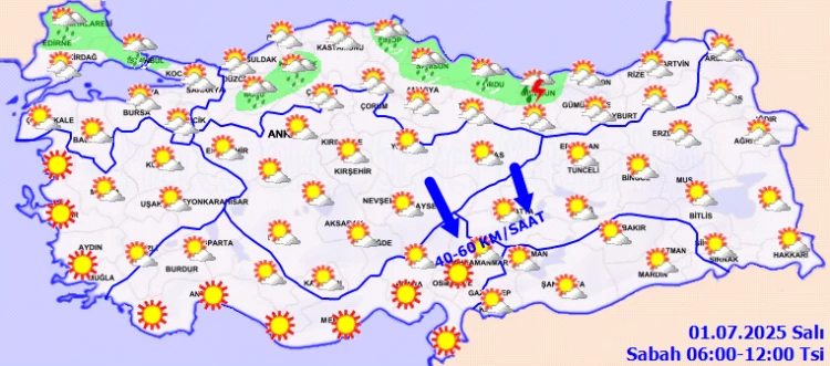 Türkiye’nin kuzey ve iç kesimleri parçalı ve çok bulutlu bir havanın etkisi altında olacak. Bu bölgelerde öğle saatlerinden sonra sağanak yağış beklenirken, Marmara, Ege ve bazı doğu illerinde kuvvetli rüzgarlara karşı dikkatli olunması istendi.
