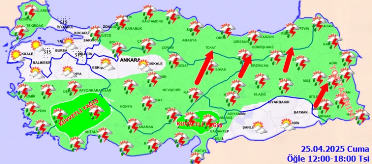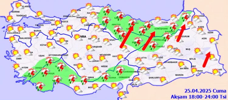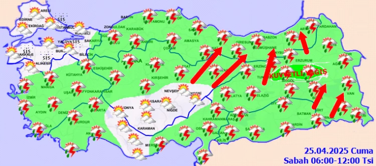 ANKARA (İGFA) - Meteoroloji Genel Müdürlüğü, 25 Nisan Cuma gününe ilişkin hava tahmin raporunu yayımladı.