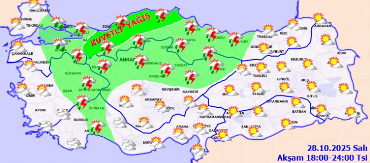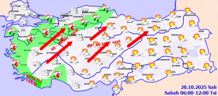 ANKARA (İGFA) - Meteoroloji Genel Müdürlüğü, 28 Ekim Salı gününe ilişkin hava tahmin raporunu yayımladı.