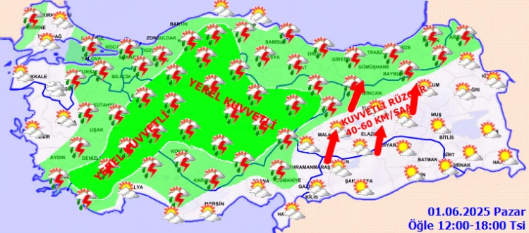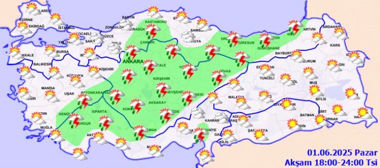 ANKARA (İGFA) - Meteoroloji Genel Müdürlüğü, 01 Haziran Pazar gününe ilişkin hava tahmin raporunu yayımladı.
