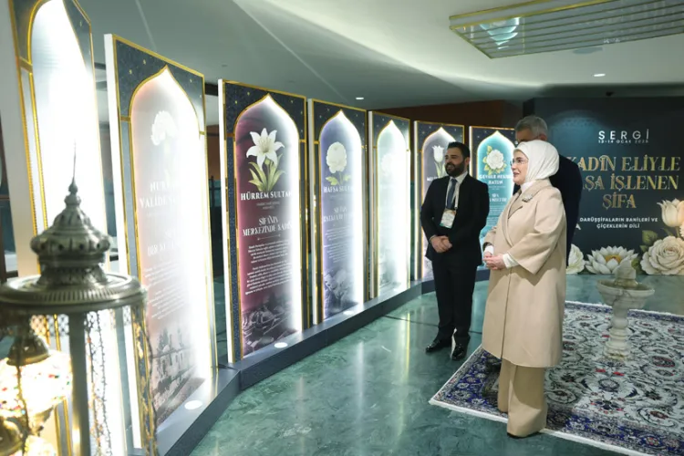 Program kapsamında hazırlanan “Kadın Eliyle Taşa İşlenen Şifa-Darüşşifaların Banileri ve Çiçeklerin Dili” sergisini gezen Emine Erdoğan, eserler hakkında bilgi aldı. Programda dile getirilecek her düşünce ve ele alınacak her başlığın insan merkezli bir sağlık anlayışına ve “Sağlıklı Türkiye Yüzyılı” vizyonuna önemli katkılar sunacağına inandığını belirten Emine Erdoğan, programın, bilimin güçlü ilerleyişiyle insanlığın asırlardır biriktirdiği hikmet mirası arasında yeni temas noktaları kurulmasının zemini olacağını dile getirdi.