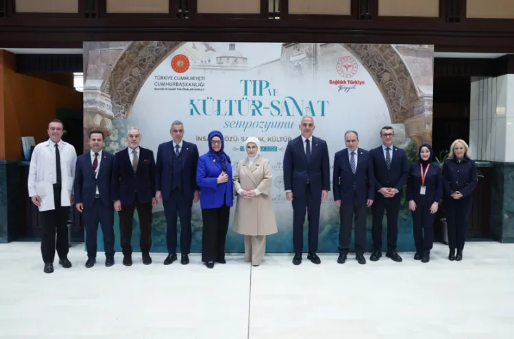 Emine Erdoğan, Cumhurbaşkanlığı Millet Kütüphanesi'nde "Tıp ve Kültür-Sanat Sempozyumu"na katılarak, tıptaki insani değerler üzerine konuştu. İbn-i Sina'ya atıfta bulunarak, tedavinin insanın ruhsal yönleriyle de ilgilenmesi gerektiğini belirtti.